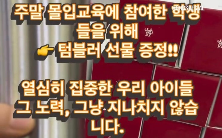 안녕하세요 유가읍 영어수학 지앤비스페셜입시학원입니다. 이번 주말, 유가읍 영어수학 지앤비스페셜입시학원에서는 중간고사를 앞두고 주말 몰입교육이 진행되었습니다. 그리고, 열심히 참여한 우리 아이들을 위해 원장님의 통 큰 응원 선물이 준비되었습니다. 바로 ‘집중하는 학생들을 위한 ‘텀블러 선물’입니다. “노력하는 시간은 반드시 보상받아야 합니다” 유가읍 영어수학 지앤비스페셜입시학원에서는 단순히 공부만 시키지 않습니다. ✔ 끝까지 자리를 지킨 학생 ✔ 집중을 유지하며 몰입한 학생 ✔ 스스로를 이겨낸 학생 이 모든 과정 자체를 ‘성장의 가치’로 인정합니다 그래서 이번 선물은 단순한 물건....... <img src="https://blogthumb.pstatic.net/MjAyNjA0MTdfMTcw/MDAxNzc2NDAwNzQ3MDMz.7y30f_3xQxMq15TNfKgOvaheOSwSujUrFCzBR3FIjv4g.dqDw8Xe9RDvLc7jiU1uYRFTsYSTsN9hNTqi4JCYuIZ8g.JPEG/IMG%A3%DF7505.jpg?type=s3" />