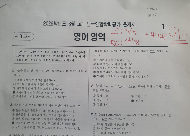 대단한 ECC아이들!! - 2026 3월 고1 모의고사(영어)