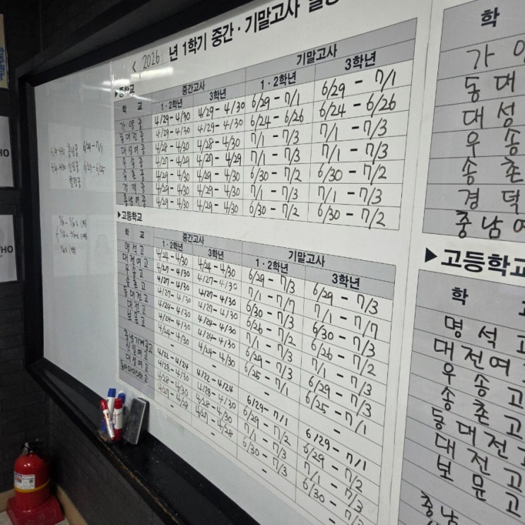 안녕하세요~! 시험대비에 진심인 일등플러스학원 원장입니다.^^ 우리 아이들의 꿈이 4월의 꽃처럼 피어나고 있습니다. 학교 담벼락 너머로 핀 꽃들보다 더 아름다운 건, 교실에서 땀 흘리며 시험을 준비하는 우리 아이들의 모습이 아닐까 싶습니다. 초창기 강사 일 때는 보이지 않던 것들이 아이들을 가르치면서 20년 경력이 쌓이다 보니 진짜로 이렇게 공부하는 아이들의 모습이 아름다워 보입니다. 가르쳤던 제자들이 어느덧 성인이 되고 각자의 길에서 자신의 직업과 역할을 하는 모습을 보면서 오늘 시험을 대비하고 있는 나의 제자들이 5년, 10년 뒤에 지금의 꽃보다 더 아름답게 피어날 것을 확신합니다. 오늘은 가양동과 비래동의 열기 가....... <img src="https://blogthumb.pstatic.net/MjAyNjA0MTdfOTUg/MDAxNzc2NDI3Nzk3NjUw.k_CgrbtT9AjimKPRqDJ0UhpMwE7gVmqtTt9ZknAYkCwg.0N0y9CkQcLnctujuh9jXtgSuZ5I12LAeJpdsnboYB_gg.JPEG/4%BF%F9_%BC%C2%C2%B0%C1%D6_%C1%DF%B0%A3%B0%ED%BB%E7_%BA%B8%B0%AD_%BD%C3%B0%A3%C7%A5.jpg?type=s3" />