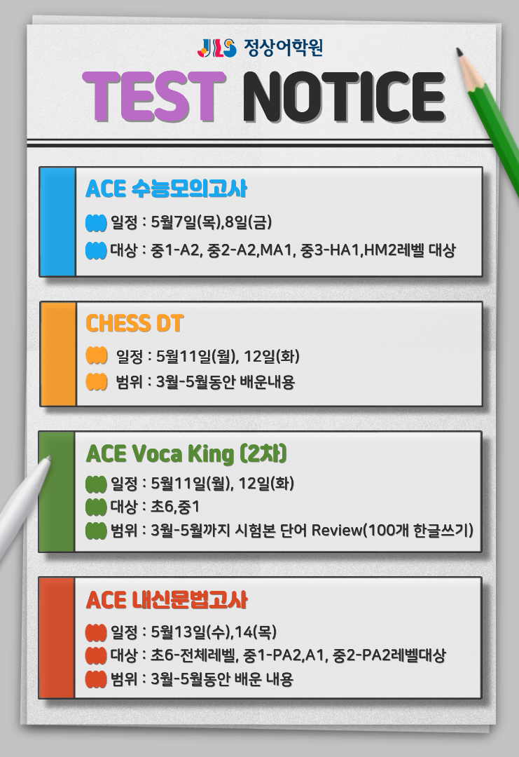 [둔산정상 5월 CHESS/ACE 시험일정]
