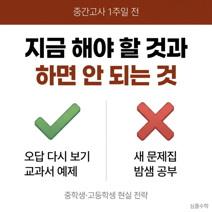 중간고사 1주일 전, 지금 해야 할 것과 하면 안 되는 것 — 중고등학생 현실 대비법