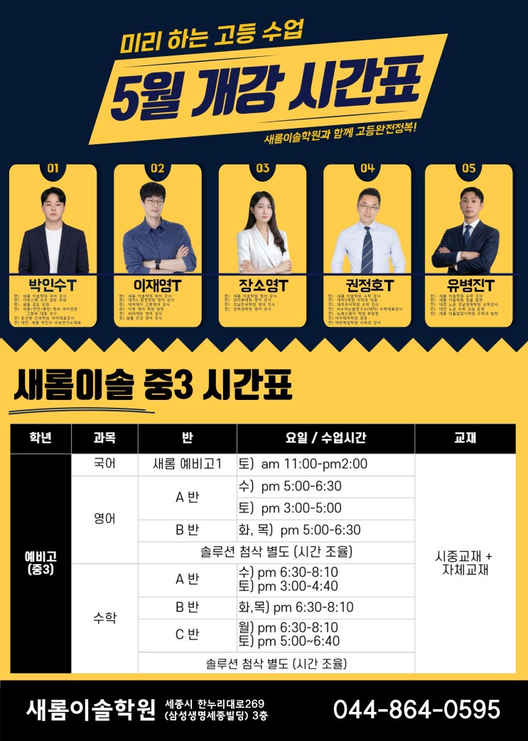 5월은 중간시험 이후 학습 리듬을 다잡고, 다음 단계를 준비하는 매우 중요한 시기입니다. #고운동수학학원 #강의하는아이들 아래 5월 일정을 확인해 주시기 바랍니다. {5월 수업일정} 수업 횟수: 주 2회(총 8회) / 주 3회(총 12회) 월/수/금 : 4월 29일~5월 27일 화/목 : 4월 28일~5월 26일 금/토 : 5월 1일~5월 23일 5월은 중간고사가 끝나고 자칫 학습 긴장도가 떨어지기 쉬운 시기입니다. 이 시기에 시행되는 **‘월간평가 및 누적테스트’**가 왜 아이들의 수학 실력을 결정짓는 결정적 한 수가 되는지, 그 중요성은 이후에 다시 업로드 해드리겠습니다! <img src="https://blogthumb.pstatic.net/MjAyNjA0MjRfMTE1/MDAxNzc3MDEyMzQ2ODMy.LWEuqvv1EfLunH5J0a6wPaLp4mPe5qLQE65uyIEFupgg.hh8lVNL0MrlfTyg8XaC5JjkMO_JTlskyFcodBAp_rcEg.PNG/1.png?type=s3" />