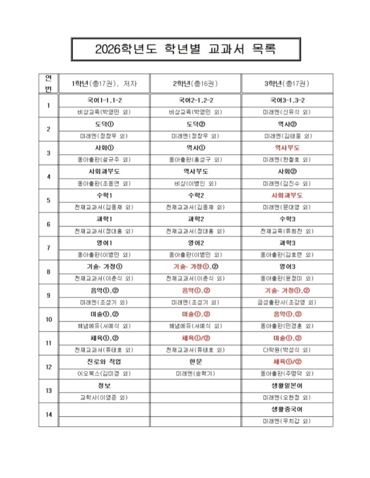율전동수학학원 2026년 천천중교과서
