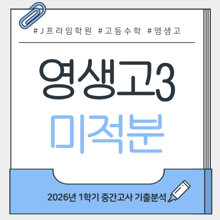 [천천동입시학원, 천천동학원, 고등수학학원, 천천동고등학원] 영생고 3학년 미적분 중간고사 분석 (2026 1학기 중간 출제경향 정리)