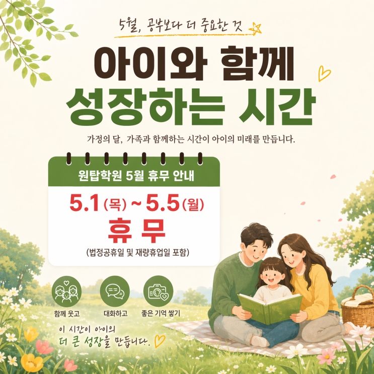 5월, 공부보다 더 중요한 것, 아이와 함께 성장하는 시간 (원탑학원 휴무 안내)
