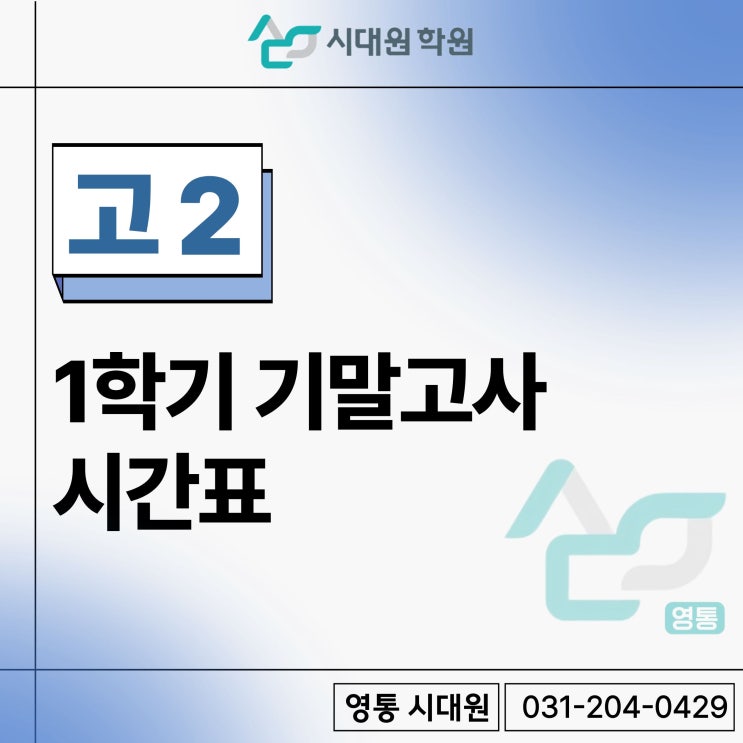 ■ 기말고사 내신 학교 안내 ■ * 전 강좌 출강 학원 1타 강사 수업 * 강사 직접 클리닉 진행 영통 시대원 셔틀버스 운행 화성고 재원생 영통 시대원 ↔ 화성고 병점고 재원생 영통 시대원 ↔ 병점고 가온고 재원생 영통 시대원 ↔ 가온고 세마고 재원생 영통 시대원 ↔ 세마고 영통 시대원 수강신청 안내 ※고2 →학교 선택→과목 선택 [중복선택가능] ※ 학교별 시간표가 나누어져 있으니 확인해주기시 바랍니다. 영통 시대원 고2 시간표 ※ 광교 시대원 시간표 확인하기 ※ (수원외고, 창현고, 유신고, 수원여고, 이의고, 광교고, 수학 연합반-일반고) - 26년도에도 최고의 수업과 관리가 될 수 있도록 열심히 강의하겠습니다. - 의대, SKY 자....... <img src="https://blogthumb.pstatic.net/MjAyNjA0MjBfNjQg/MDAxNzc2NjY2MzQ1NjQx.Wk7T3iYQT8IQXNlsNpjROKwDGvMBWrvLgdmcu_Xxb0Ag.yVH2u5Y8sfo8uCi4X75NEsAPTt7GmYlwQUKDzsH7rRog.JPEG/3.jpg?type=s3" />