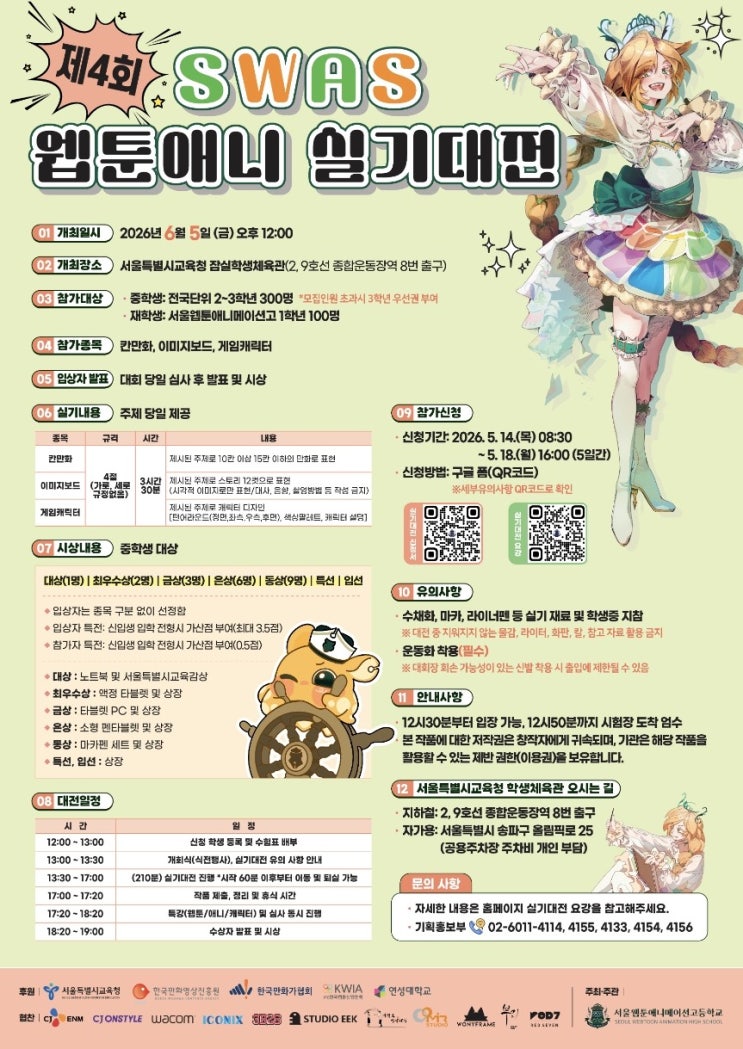 서울웹툰애니고 주최 제4회 SWAS 웹툰애니 실기대전 안내