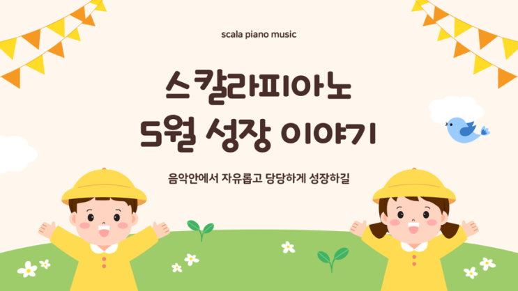 안녕하세요 :) 스칼라피아노입니다 따스한 햇갈이 가득한 가정의 달 5월입니다. 우리 아이들이 음악 안에서 자유롭고 당당하게 성장하길 바라는 마음을 담아, 이번 달 소식지를 전해드립니다. 스칼라 피아노의 교육 철학 "생각이 자라도록 기다리는 음악교육" 스칼라피아노는 빠른 성과보다 아이 스스로 생각하고 느끼는 시간을 존중합니다. 음악을 통해 질문하고, 이해하고, 표현하는 과정을 기다리는 교육이 진짜 실력과 평생의 감성을 만든다고 믿습니다. 손가락보다 먼저 마음을, 기술보다 먼저 태도를, 결과보다 성장의 과정을 가르칩니다. 아이 한 명, 한 명의 속도와 가능성을 신뢰하며 삶 속에서 음악을 누릴 줄 아는 깊....... <img src="https://blogthumb.pstatic.net/MjAyNjA0MjhfOTYg/MDAxNzc3MzAzNjIwOTk3.AK11HIHKyiGAocatoxv3PPTV3GGiD-_N0gF1hDdLX9Ag.6LP-Vq4eL5giQyNYdm7tlh5RpEvyDsVOJRqj2ZZL-84g.PNG/scalapaino%BC%D2%BD%C4%C1%F6_%A3%AD_1.png?type=s3" />