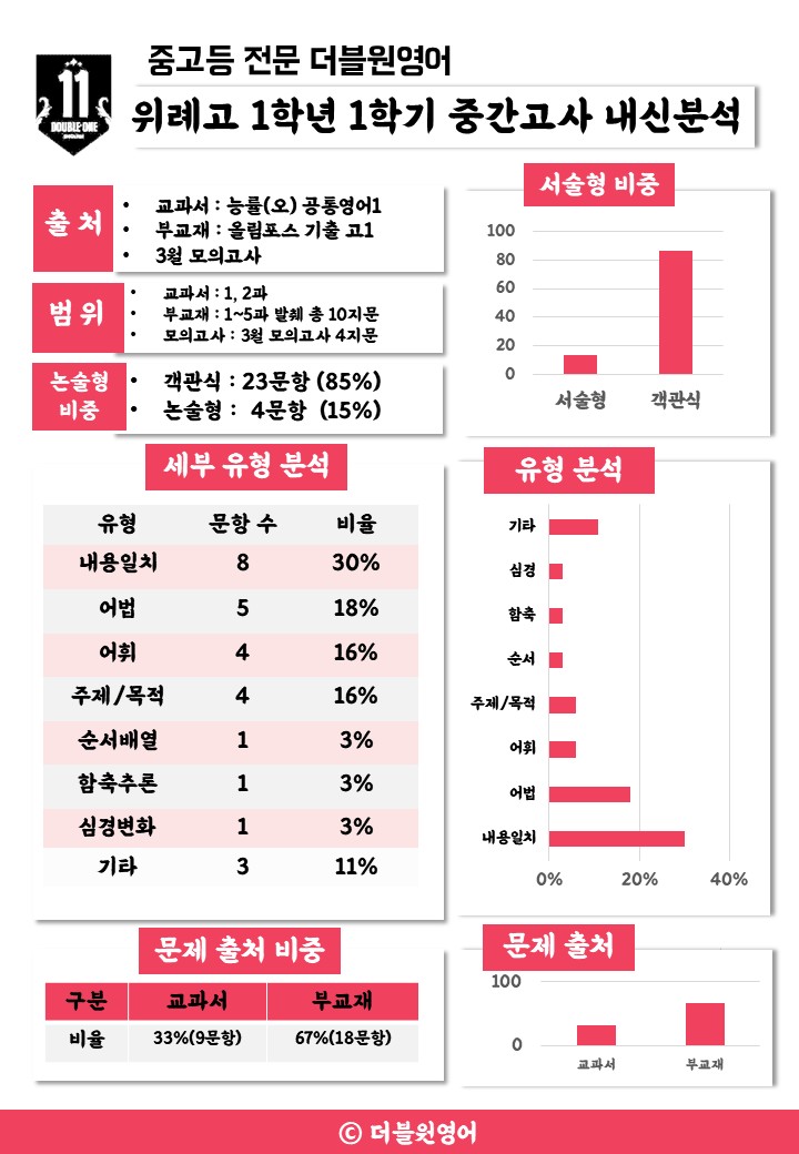 더블원 위례고1 중간고사 내신분석본 [위례영어학원]