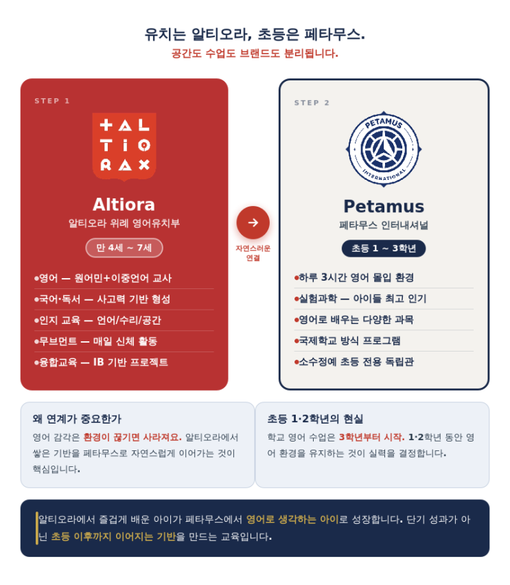 영어유치부에서 국어를 가르친다고 했더니, 학부모님이 황당해하셨습니다 안녕하세요, 알티오라 위례 원장 ELLY입니다. 커리큘럼을 처음 공개하던 날 일입니다. "원장님. 국어 독서요? 여기 영어유치부 아닌가요?" 예상은 했습니다. 저도 그 자리에 학부모로 앉아 있었다면 똑같이 물었을 겁니다. 그런데 지금 이 글을 끝까지 읽고 나시면, 아마 생각이 달라지실 거예요. 영어를 잘하는 아이들에게는 공통점이 있습니다 잘 가르친다는 영어유치부를 거쳐 온 아이들을 보면 패턴이 보입니다. 영어를 정말 잘 쓰는 아이들, 즉 말하고 표현하고 설명까지 하는 아이들. 이 아이들 대부분은 국어도 잘합니다. 우연이 아닙니다. 언어 습득 연....... <img src="https://blogthumb.pstatic.net/MjAyNjA0MTFfMTE2/MDAxNzc1ODM2MzUxNDE3.4A0oxJ3V_mqa9REDavGYOso3reip5iAi8s-yWpcvhKsg.qPla8II2Rdw6oAKkgJA03qeQo6VrgEuYe7X4kngdeL0g.PNG/%BE%CB%C6%BC%BF%C0%B6%F3_%C6%E4%C5%B8%B9%AB%BD%BA_%B7%CE%B5%E5%B8%CA_%C3%D6%C1%BEv8.png?type=s3" />