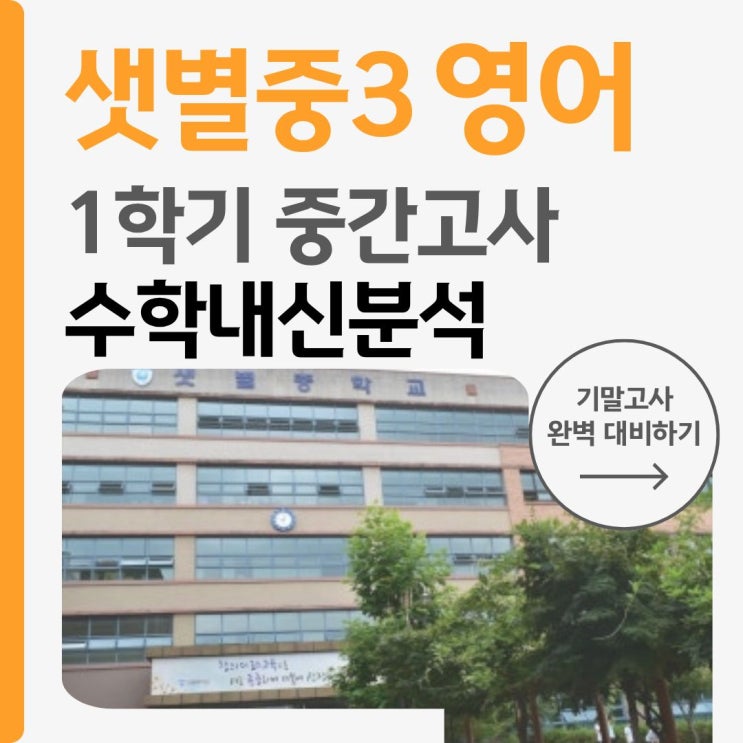 샛별중 3학년 중간고사 분석 시험범위 : 미래엔(최) 1, 2과 & 외부지문 95점 실화입니까?? 더클라스 영어학원에서 철저한 준비와 꼼꼼한 분석을 통해서 2학년때 70~80점대에 머물면서 B를 맞았던 학생이 3월부터 새롭게 함께하면서 이번에 95점이라는 좋은 성적을 맞을 수 있었습니다. 2학년때까지 영어에 특히 약했던 학생이 더클라스영어학원에 다니면서 그것도 2개월만에 95점을 맞았습니다. 분당 수내동 영어전문 김주휘원장님의 샛별 증 영어 내신 총평 샛별중학교 3학년 문제의 특징은 영어선생님께서 유형별 문제를 골고루 내셨다는 것입니다. 예를 들면, 어법을 묻는 유형만 봐도 4문제가 똑같은 패턴이 아닌 다양한 형태의 문제로 출....... <img src="https://blogthumb.pstatic.net/MjAyNjA0MjlfMjQg/MDAxNzc3NDI5NDA3OTUy.3EK2jssrSiEL3CAE5XDmZCepauJiCd8Lf5tHtj10jYcg.kGChWsMubSxcX8WHRPzVjUro3EZqm7UsP0YwUsV3uMEg.JPEG/4.jpg?type=s3" />