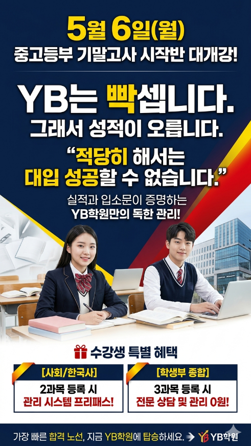 YB는 빡셉니다. 그래서 성적이 오릅니다. "적당히 해서는 대입 성공할 수 없습니다." 실적과 입소문이 증명하는 YB학원만의 독한 관리! 수강생 특별 혜택 [사회/한국사] 2과목 등록 시 관리 시스템 프리패스! [학생부 종합] 3과목 등록 시 전문 상담 및 관리 0원! 가장 빠른 합격 노선, 지금 YB학원에 탑승하세요. 오늘부터는 27학년 대학별 수시&정시 전형을 분석하도록 하겠습니다 학교별로 제공하는 카테고리가 다르기 때문에 제 블로그상의 카테고리를 잘 보시면 좋을거 같네요 더불어 지금 제공하는 자료는 27년 대입 시행계획으로 입시요강(확정)은 아닙니다 하지만 거의 변동은 없다고 보시면 됩니다 https://www.adig....... <img src="https://blogthumb.pstatic.net/MjAyNjA0MjJfMjk1/MDAxNzc2ODUzNjAzMDk0.bUSrQtWOqKuNZ86vKEABraOSg4nIZoSZhN0oAnBL-_Ag.-F3DU_iT-T60qn6FG9gdYIR2bYXjUdIKaCWiKBq4I6wg.PNG/image.png?type=s3" />