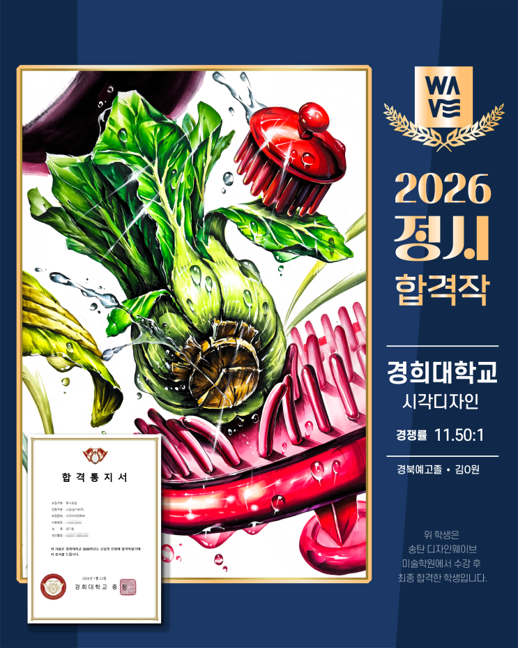 평택미술학원 · 송탄미술학원 입시전문 미술학원 디자인웨이브 미술학원 경기도 평택시 경기대로 1371, 경성빌딩 3F (송탄출장소 맞은편) 031.665.4970 안녕하세요~! 평택 고덕 입시전문 미술학원 디자인웨이브 미술학원입니다 '◡' 오늘은 2026학년도 경희대학교 시각디자인 정시 기초디자인 합격 소식을 전해드립니다. 이번 합격의 주인공은 경북예고졸 김0원 학생입니다!! 꾸준한 노력과 탄탄한 기본기를 바탕으로 치열한 경쟁을 뚫고 당당히 합격했습니다! 아마 많은 분들이 “평택 미술학원인데 왜 경북예고 출신 학생이 다니고 합격했을까?” 궁금해하실 수도 있을 것 같습니다 :) 디자인웨이브에는 타 지역, 타학원에서 준비하....... <img src="https://blogthumb.pstatic.net/MjAyNjA0MjNfMTMw/MDAxNzc2OTMyMjI2MjY1.NE4mHtybVhOz-9gkdxJdN_j5lsrBUInDmKIOHEtWTE4g.WiI1wUzhHyYioqYDuLgYxjnt-UnzvGGE8ritxZFD5eIg.PNG/2026%C1%A4%BD%C3%C7%D5%B0%DD%C0%DB-09.png?type=s3" />