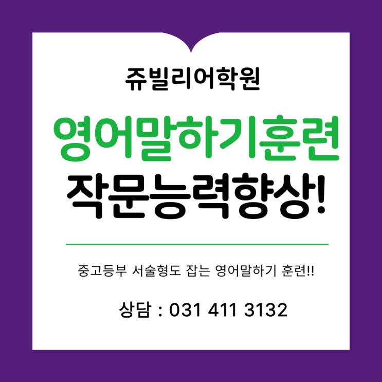 안녕하세요 쥬빌리어학원입니다! 최근 들어서 교육의 변화로 인하여 서술형이 늘어나고 문법과 작문의 중요성이 커집니다! 하지만 무조건 문법과 작문을 공부한다고 해서 영어 작문이 되는 것이 아닙니다! 자신이 할 말은 영어로 말할 수 있는 능력을 기르면 작문 실력은 자연스럽게 따라올 수 있습니다! 초등과정에서의 말하기 훈련이 중 고등부 영어 작문에 제대로 연결이 됩니다! 저희 쥬빌리어학원에서는 초등과정에서 철저한 말하기 훈련을 통해서 의사소통의 수단으로서의 영어소통능력을 기를 수 있도록 훈련을 합니다! 그러면 이 말하기 훈련이 바로 중고등부 영어작문으로 바로 연결이 되는 경향이 있습니다! 말하기와 쓰기는 같은 뿌리....... <img src="https://blogthumb.pstatic.net/MjAyNjA0MjhfOTEg/MDAxNzc3MzM0NzI3NzY4.fJWaHRMUB8RaZhqggsLQj82c8xlapRq7ZBf3QFINwzEg.hJnmhpbT7Ym0l7-md3HRx3b27s-emjbAgPl13bp6b0sg.PNG/%C1%A6%B8%F1%C0%BB_%C0%D4%B7%C2%C7%D8%C1%D6%BC%BC%BF%E4._-_2026-04-28T090121.762.png?type=s3" />