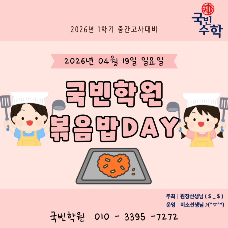 [구리수학학원 이벤트] 국빈학원 볶음밥 DAY(260419) | 장자호수공원역 | 구리고등수학전문학원 | 구리시수학학원추천 | 구리소수정예수학학원 | 구리내신수학 | 토평동수학