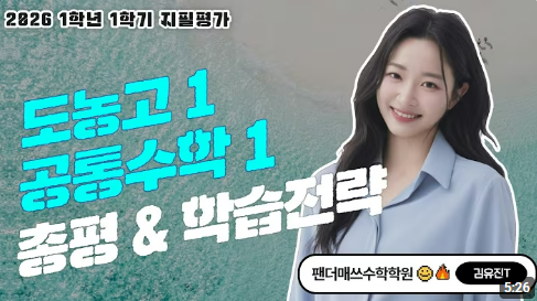 "도농고 1학년 1학기 1차 지필평가 분석" 안녕하세요, 남양주 초중고 수학전문, 팬더매쓰수학학원입니다. 도농고등학교 1학년 1학기 1차 지필평가 대수 기출 분석을 해보겠습니다. 시험 개요 -총 문항 수: 25문항 (선택형: 25문항) -출제 단원: 다항식의 연산 3문항 / 나머지 정리와 인수분해 9문항 / 복소수 5문항 / 이차방정식 2문항 / 이차방정식과 이차함수 6문항 자세한 코멘트는 영상을 통해 확인해주시기 바랍니다. 이번 지필평가 총평 & 앞으로의 학습 전략 1. 무난한 난이도 전체적으로 난이도는 무난했으며, 어려운 문제는 없었습니다. 쉬운 난이도의 문제들을 빠르고 정확하게 해결해나가는 방법이 필요한 시험이었습니....... <img src="https://blogthumb.pstatic.net/MjAyNjA0MjhfMTM3/MDAxNzc3MzY0NjU5MzIz.pv2KtHBhRzMCyYau8T1-t-1cAxsxEVzv4vXISnSyZ1og.qwVYfj-xn0GEeTpoEcp95R0QYBNa8y4Doxht8AZPK14g.PNG/image.png?type=s3" />