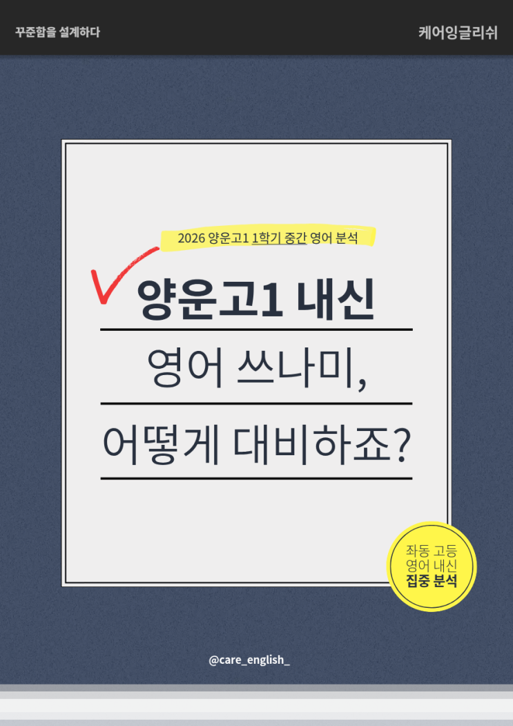 2026 양운고1 1학기 중간 영어 분석. 영어 쓰나미!!! 어떻게 대비하죠?? - 해운대 좌동 영어 학원, 케어 잉글리쉬