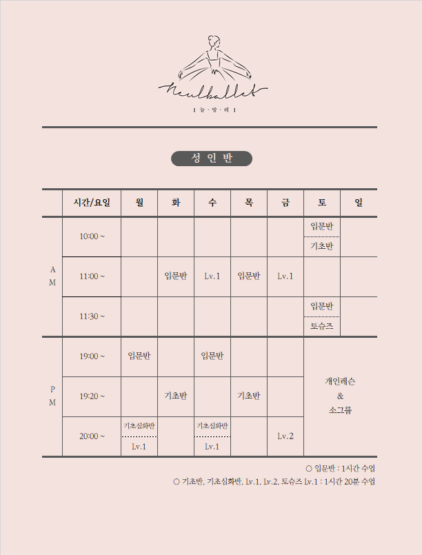 【 광명 발레학원 늘 발레 】 2026년 5월 클래스 시간표 공지