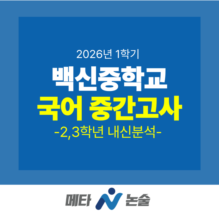 안녕하세요 메타n논술입니다. 2026년 1학기 중간고사가 끝이 났습니다. 오늘은 중등 중간고사 내신 분석 시간을 가져보려고 합니다. 시험은 항상 보고 난 뒤에 시험을 분석하고 학생 스스로 어떤 부분에서 오답이 있었는지 확인하는 것이 가장 중요합니다. 여러번의 시험을 통해 학생이 스스로 오답을 찾아가며 성취감이 생기며 문제풀이 능력을 향상시키는 것이 굉장히 중요합니다. 일산동구 중학교 국어시험은 과거에 비해 단순히 교과 지문뿐만 아니라 외부 지문 출제가 있던 학교도 많았기 때문에 다양한 작품을 습득 훈련한 학생이나 문해력이 탄탄한 학생이 아니었다면 시험이 어렵게 느껴지거나 시간이 매우 부족했을 것으로 예상됩니다. ....... <img src="https://blogthumb.pstatic.net/MjAyNjA0MjZfMTg5/MDAxNzc3MTkxMDQxNzYw.SlsbeJf3tJlu5o5c9CvKA8zDbYrfeec8_yuuAXPwA1gg.lhkFwgYPTHJEiSFj5YbXXAb33u1DePD_KaShNxfDnTog.PNG/1.png?type=s3" />