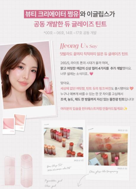 안녕하세요 뷰티도사입니다 오늘은 입술 위에 맑은 이슬을 얹은 듯, 투명하고 영롱한 광택으로 코덕들 사이에서 입소문 난 이글립스 듀 글레이즈 틴트 14호 핑크듀 내돈내산 후기를 들고 왔습니다. 최근 탕후루 립, 글레이즈 립이 트렌드로 자리 잡으면서 많은 브랜드에서 촉촉한 틴트를 출시했는데요. 그중에서도 이글립스는 가성비와 퀄리티를 모두 잡은 브랜드로 유명하죠. 특히 이번 14호 핑크듀는 뷰티 크리에이터 쩡유님과 공동 개발한 컬러 라인업 중 하나로, 기존에 있던 00호 듀 색상과 비슷한 느낌입니다 00호 듀 색상은 반투명 피치코랄로 출시되었고 그 인기에 힘입어 이번에 14호 핑크듀 컬러가 출시되었습니다 제품명: 이글립스 듀....... <img src="https://blogthumb.pstatic.net/MjAyNjA0MjJfMTkg/MDAxNzc2ODM0NzYwNTYw.RARbtv6C_H-AvGu3Uf1o4A7333F7suU07mtqCY055rYg.WkLJX4uuO3k7-rtwoQeZDfNXE6ehgeWTEZGJ8RbMz2sg.JPEG/Wjddb.JPG?type=s3" />