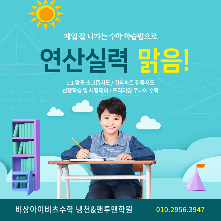 안녕하세요, 비상아이비츠수학 냉천&맨투맨 학원입니다 아이들이 수학 문제를 풀고 있는 모습을 가만히 보면, 유독 연산 문제에서는 손이 빠르게 움직이는 반면 조금만 문장이 길어지거나 응용이 들어가면 갑자기 멈춰버리는 순간들이 있습니다. 분명 계산은 잘하는데, 문제를 이해하고 풀어내는 과정에서는 어려움을 느끼는 모습. 이 차이는 어디에서 생기는 걸까요? 오늘은 연산 공부, 이렇게 하면 효과 없습니다 라는 주제로 많이 놓치고 있는 부분들을 함께 이야기해보려고 합니다. 첫 번째는 속도만 강조하는 연산 학습입니다. 많은 경우, 연산은 ‘빨리 푸는 것’에 초점이 맞춰져 있습니다. 시간을 재고, 더 빠르게 푸는 것을 목....... <img src="https://blogthumb.pstatic.net/MjAyNjA0MjNfMTY3/MDAxNzc2OTIxNDE0NzU1.ov-CbXouC0Y-6HRTqWB-M8eG4-X_RZ8gYs4AbNhDipUg.eosCklB-ayQHQbtzHC2uB-G8Gva01Lg_QpauK8AmV-0g.PNG/%C1%A6%B8%F1%C0%BB_%C0%D4%B7%C2%C7%D8%C1%D6%BC%BC%BF%E4._%2827%29.png?type=s3" />