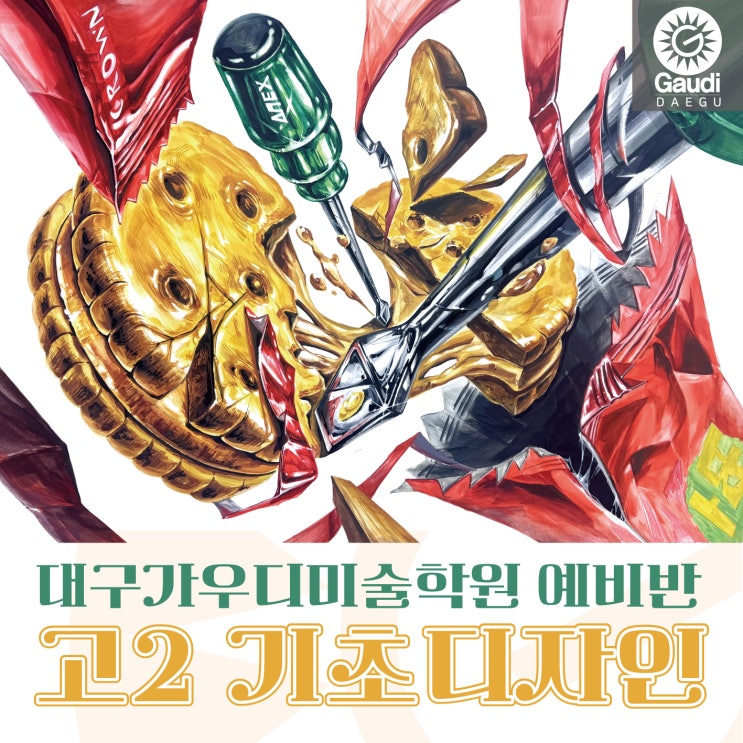 안녕하세요 대구수성구 입시미술학원 디자인가우디미술학원입니다! 앞서 고2였던 친구들이 해가 바뀌고 어느덧 고3입시생이 되었고 새롭게 시작하는 고2 친구들과 진행된 첫 수업이었습니다! 대구가우디미술학원 고2 친구들은 앞서 기본기부터 개체묘사, 소묘, 구성 등 1학년때부터 단계적으로 과정을 거쳐와서 고2가 되자마자 바로 기초디자인 유형을 접해 볼 수 있었는데요. 앞서 단계적으로 차분히 밟아온 그 과정들이 있기에 친구들이 기초디자인 유형을 쉽게 쉽게 풀어가는 것 같습니다. 첫 수업에서는 가장 먼제 기본적인 주제부의 크기와 역할 그리고 공간을 연출하는법 다양한 각도를 활용하여 그림의 집중감을 주는 법들에 대한 것들을....... <img src="https://blogthumb.pstatic.net/MjAyNjA0MTZfMTA1/MDAxNzc2MzE3NTE2NzY4.gGEuF3TsdejsLandrC5TCHPFhHsL03RgJQJyUVCwiWAg.bzprKEeZ3zF1fXqeg4FqVoAzy4HVHapSyWh7zqyKbjMg.JPEG/11111.jpg?type=s3" />