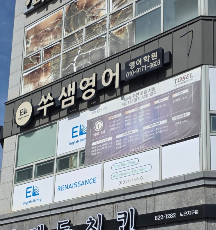 안녕하세요? 부산 영어쑥쑥어학원 원장, 영어쑥쑥 에듀센터 대표 최연순입니다. 어제는 대전 노은동 영어학원, 쑤샘영어학원을 방문했습니다. 들어가자마자 영어원서가 반기는 이곳은 초등부터 중등까지, 원서를 기반으로 영어를 배우는 전문 학원입니다. 학원에 들어서자마자 눈에 들어온 것은 아기자기하게 꾸며진 공간과 교실 곳곳에 채워진 영어 원서들이었습니다. 작은 디테일 하나하나에서 아이들을 위한 고민과 원장님의 애정이 느껴지는 공간이었습니다. 원서 정독에서 시작되는 영어 수업 쑤샘영어학원의 수업은 초등 원서 정독에서 시작됩니다. 아이들은 단순히 책을 읽는 것을 넘어 내용을 이해하고, 표현을 익히고, 자신의 것으....... <img src="https://blogthumb.pstatic.net/MjAyNjA0MTNfNzAg/MDAxNzc2MDQwMDcxMDgz.wO56mqjtTtwA9DNe2g5chgAUbTMV9FjIQo6OLQcIV-Ug.vPrm95GY7OFOBU8Hgg0GDoSZ13oWOdhF0fjUwr1MpMUg.JPEG/900_20260412_095108.jpg?type=s3" />