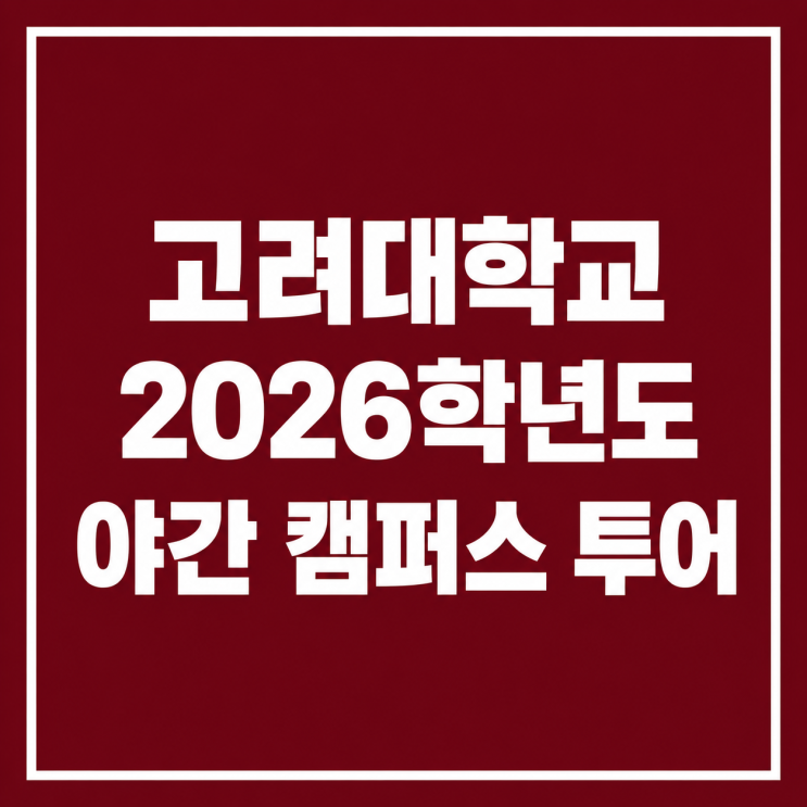 캠퍼스의 하루가 끝나갈 무렵, 사람들의 발걸음이 잦아들고 불빛이 하나둘 켜지기 시작하는 시간에 특별한 투어를 준비했습니다. 이번 야간 캠퍼스투어에서는 낮 동안 스쳐 지나갔던 공간들이 전혀 다른 분위기로 다가오는 순간을 함께 걸어보려 합니다.안암의 밤이 만들어내는, 평소와는 다른 고려대학교를 만나보세요.✨ 일시: 5월 11일 (월) ~ 5월 14일 (목) 오후 7시 30분 장소: 고려대학교 중앙광장 분수대 앞 대상: 재학생 및 고려대학교에 관심있는 누구나 (요일별 선착순 50명) 기한: 4월 29일 (수) 23:59 ✔️신청: QR코드 스캔 후 구글폼 작성 https://docs.google.com/forms/d/e/1FAIpQLSdM-PX9SYIvHV5YvqMS8_....... <img src="https://blogthumb.pstatic.net/MjAyNjA0MjVfMTkw/MDAxNzc3MTAzMjIyNjMw.vjqG_Ned3LJHwG1u3FBtZYnWYlukPLdaTnnHr-Jwi00g.Iz59--dq3OA0twfM1UaQBKF9UY0HVmd2Kevrkap5qXgg.PNG/95edb96a-ec48-45e4-828a-faeb783f00f8.png?type=s3" />