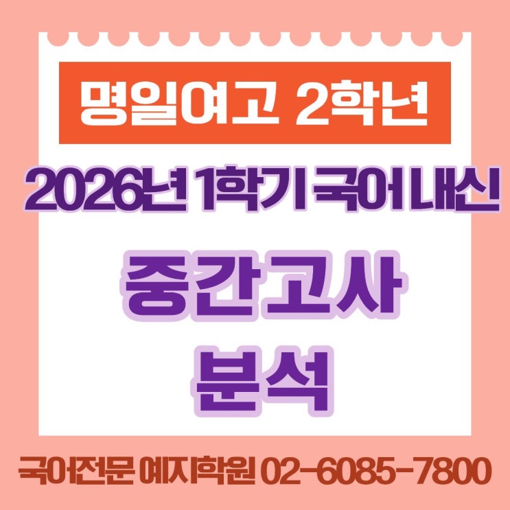 안녕하세요 예지학원입니다. 오늘은 명일여고 2학년의 문학 시험에 대해 분석해 보고 앞으로의 대비 방향까지 말씀드리고자 합니다. 먼저, 총 28문항(선택형 24문항, 서답형 4문항)으로 출제된 이번 시험의 전반적인 난도는 평이한 수준으로 볼 수 있을 것 같습니다. 몇몇 전체적으로 보았을 때 작품에 대한 충실한 이해를 바탕으로 꼼꼼히 공부하였다면 큰 어려움 없이 풀 수 있는 문제들이 많았습니다. 물론 교과서 외의 지문들도 출제되었습니다. 그러나 학교에서 프린트를 통해 미리 공지해주고 수업도 진행한 작품들이어서 미리 공부만 잘 해두었다면 교과서 범위와 크게 다르지 않은 느낌으로 접근할 수 있었으리라 예상됩니다. 다만, 예고....... <img src="https://blogthumb.pstatic.net/MjAyNjA0MjZfMjQ2/MDAxNzc3MjAxNTg1Njg1.9jUwiZ6eAmKUMrPWSo6kGAxH0iyQRHpb77EE5rAzQxUg.b8LG97zAQtcI56qbB2Yzq4-8xvGwZbo_Hm32Ohls0Jsg.JPEG/KakaoTalk_20260425_103224253.jpg?type=s3" />