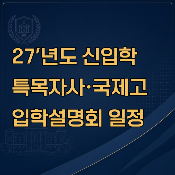 안녕하세요, 청담어학원 분당브랜치 입니다. 2027학년도 신입학 대비 특목고·자사고·국제고 입학설명회 일정 공유 드립니다. 아마도 현재 중학교 학생과 학부모님들께서 가장 궁금해하시는 시기일 것입니다. 바로 2027학년도 특목고·자사고·국제고 신입학 입학설명회 일정입니다. 주요 학교들의 공식 입학설명회 일정은 아래와 같으며, 관심 있는 학부모님들께서는 각 학교의 상세 URL을 통해 사전 예약 후 참석 하시는 것을 권장드립니다. 청담어학원은 매년 특목고·자사고·국제고 입시를 체계적으로 준비·지도하고 있으며, 외부에 크게 알려지지는 않았지만 매년 매우 우수한 입시 결과를 꾸준히 기록하고 있습니다. 특목고·자사고·국제고 입시....... <img src="https://blogthumb.pstatic.net/MjAyNjA0MjhfMjc1/MDAxNzc3MzU1OTY1NDky.yoYbCLx_ExwncOLn26NsadQbFGaADzwgVXwvE4eP6xog.rmklw2h1Zx5tvr5FdCT4dk44kpCcqp_YJLOfugWl3xsg.PNG/27%B3%E2%B5%B5_%BD%C5%C0%D4%C7%D0_%C6%AF%B8%F1%C0%DA%BB%E7%26middot%3B%B1%B9%C1%A6%B0%ED_%C0%D4%C7%D0%BC%B3%B8%ED%C8%B8_%C0%CF%C1%A4.png?type=s3" />