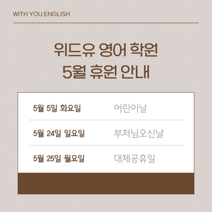 위드유 영어 학원 [5월 휴원] 안내드립니다:)