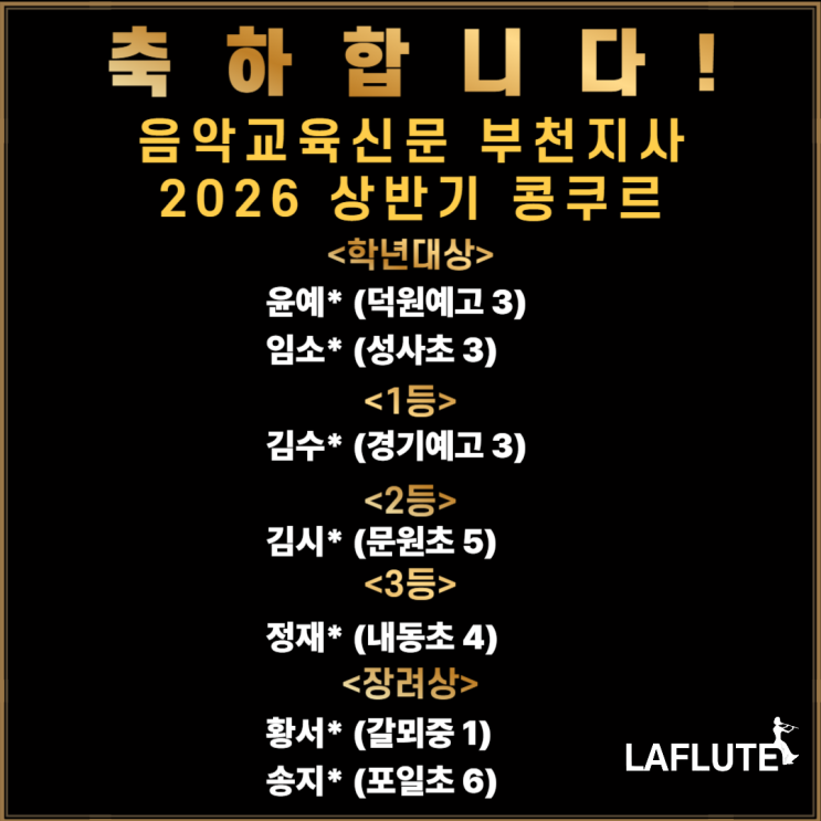 라 플루트 콩쿠르 입상 소식 - 음악교육신문 부천지사2026 상반기 콩쿠르