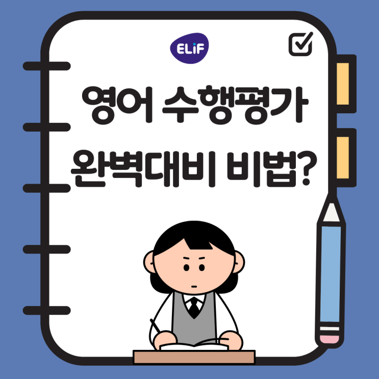 초등 고학년부터 예비중 학부모님들! 수행평가가 걱정되시나요? 요즘 중학교 영어 수행평가는 단순 암기나 문제풀이만으로는 절대 대비가 어렵습니다. 글쓰기, 발표, 그리고 실제 상황에서 활용하는 영어까지 요구되는 만큼 아이의 종합적인 영어 실력이 중요한 평가 기준이 되고 있습니다. 그래서 많은 학부모님들께서 이런 고민을 하십니다. “우리 아이, 중학교 가서 수행평가 잘 해낼 수 있을까요?” 엘리프에서는 ‘이미’ 준비가 되고 있습니다! 엘리프어학원에서는 중학교 수행평가를 대비하여 초등때부터 수업 자체가 수행평가 대비 과정이 되도록 설계되어 있습니다. ✔ 매달 진행되는 북리포트 작성 → 단순 독후감이 아닌, 구조를 갖....... <img src="https://blogthumb.pstatic.net/MjAyNjA0MTZfMSAg/MDAxNzc2MzE2NDU0Nzc4.gE7tGhPcXM9Lv_T52ZgYorHhvYEO1BI9jG7KM6TCAwgg.eH3yWu9P8ClifmojC8O9A9P8V8qX9go37ifoFZFcfE0g.PNG/%BC%F6%C7%E0%C6%F2%B0%A1.png?type=s3" />