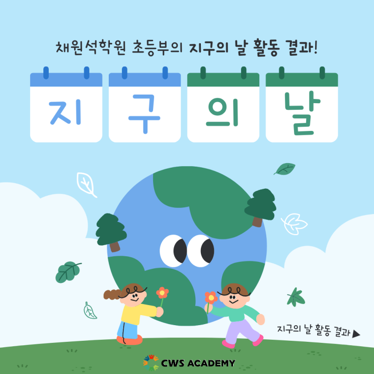 안녕하세요! 채원석 학원입니다. 채원석학원 초등부에서 4월 22일에 진행했던 지구의 날 행사 참여 결과 안내드립니다. 지구의 날은 지구 환경오염 문제의 심각성을 알리기 위해서 자연보호자들이 제정한 지구 환경보호의 날입니다. 채원석학원 초등부에서는 총 27명의 학생이 지구의 날 행사 중 하나인 소등 행사에 참여했습니다. 초등부 재원생들이 각 가정에서 저녁 8시부터 일정 시간 동안 소등하여 잠깐이나마 지구가 쉴 수 있게 해주는 의미있는 시간이었습니다. 앞으로도 채원석학원 초등부에서는 열심히 공부하는 학생들에게 공부 외에도 다양한 사회문제에 대해 함께 알아보며, 이와 관련하여 도움이 되는 이벤트와 활동들을 계속해서 진....... <img src="https://blogthumb.pstatic.net/MjAyNjA0MjVfMjQy/MDAxNzc3MTAwNzg5ODkz.yzpxefydLJAs2EWNKUOCEcPo1tbowZ1jK8ReBGBoYjAg.bGQKh4PlNcwgiQ2mquJH1QAANwbwZX3fzg8TTOxtPl4g.PNG/1.png?type=s3" />