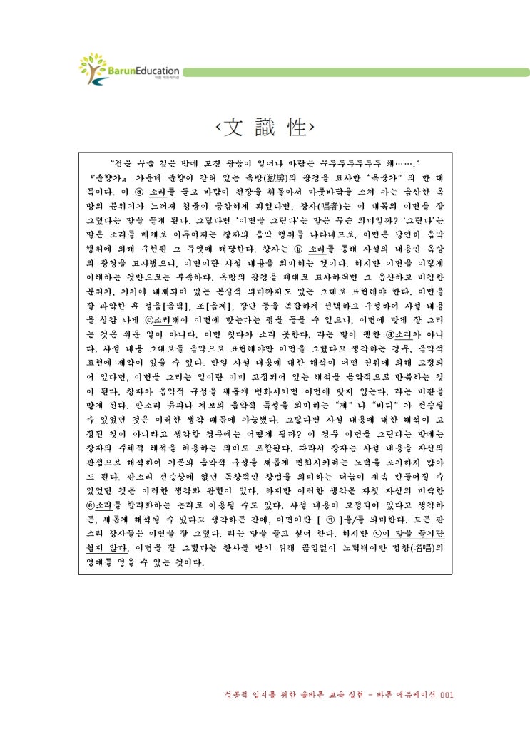 [인천고잔고] 국어는 공부를 해도 공부를 안 해도 점수가 제자리에요! - 바른에듀케이션 학원