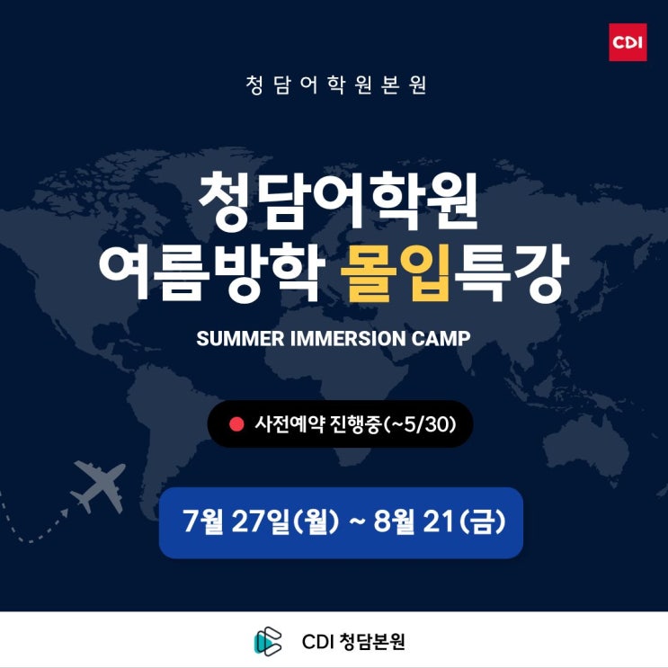 [청담어학원 본원] ★7/27(월)개강★ 26 여름방학 몰입특강 사전예약(~5/30)