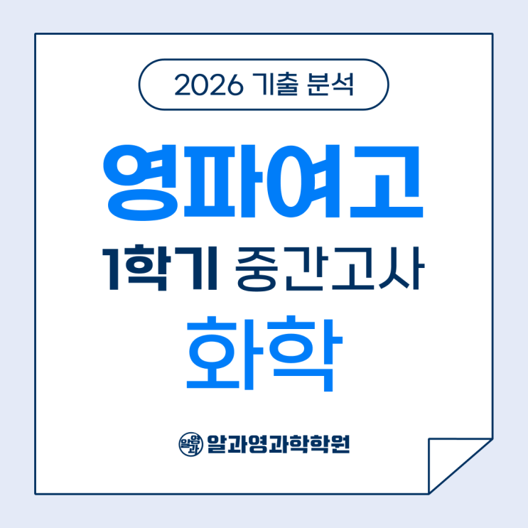 안녕하세요 알과영 과학학원입니다. 영파여고 2학년, 이번 화학 시험 어떠셨나요? 고2가 되면서 과목 난이도가 달라진다는 건 알고 있었지만, 막상 시험지를 받아든 순간 그 체감은 또 다른 이야기였을 거에요. 통합과학 시절과는 완전히 다른 방식으로 묻는 화학, 준비했음에도 시간이 부족했던 학생들이 많았을 것으로 보입니다. 결과에 상관없이, 그 낯섦과 맞서 끝까지 풀어낸 학생들에게 먼저 수고했다는 말을 전하고 싶습니다. 영파여자고등학교 2학년 화학 1학기 중간고사 문항 분석 알아도 틀리게 만든 시험 이번 영파여고 2학년 화학 중간고사는 단순히 어려운 문제가 많았던 시험이 아니었습니다. 알고 있는 개념도 끝까지 계산을 완수....... <img src="https://blogthumb.pstatic.net/MjAyNjA0MzBfMjE1/MDAxNzc3NTE3ODE4Njgy.cDbrXvgAC_k57MvMjx_WpEC1QMzuh_ZOXCkS2Zmeg74g.qIhZKUggXXSsBvPYd2DaiARyljQHPb2rJnL_3I4ESf0g.PNG/%EA%B8%B0%EC%B6%9C%EB%B6%84%EC%84%9D27.png?type=s3" />