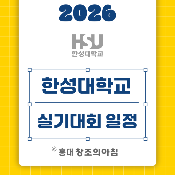 2026 한성대학교 디자인 실기대회 일정 안내 안녕하세요! 홍대 창조의아침입니다 :) 슬슬 햇빛이 강해지는 시즌! 모두 일교차를 조심하면서 입시 준비를 하고 계신가요? 이번 포스팅에서도 미대입시생에게 중요한 실기대회 일정을 안내해 드리려고 합니다! 이번에 안내해 드릴 실기대회 일정은 한성대학교 디자인 실기대회입니다. 2026 한성대학교 디자인 실기대회의 접수 기간은 2026년 5월 4일 월요일 오후 4시부터 6월 1일 자정까지입니다. 접수는 월간아트앤디자인 홈페이지에서 접수 가능합니다. 중요한 점은 선착순 마감이 될 수 있고, 거기다 회차별 중복접수까지 가능하기 때문에 당일 오후 4시가 되자마자 접수하시는 것이 좋겠습니다. ....... <img src="https://blogthumb.pstatic.net/MjAyNjA0MTdfMzAg/MDAxNzc2NDIxNjUwNDgz.hpWImPRwvwuhEixfn2rAaHYH_AIquwhkjjsMIUedCLEg.39vtseWoJ6FqskdfSrn9GWh7dbibgBU_lQWvIU_Hjxog.PNG/%BD%BD%B6%F3%C0%CC%B5%E51.PNG?type=s3" />