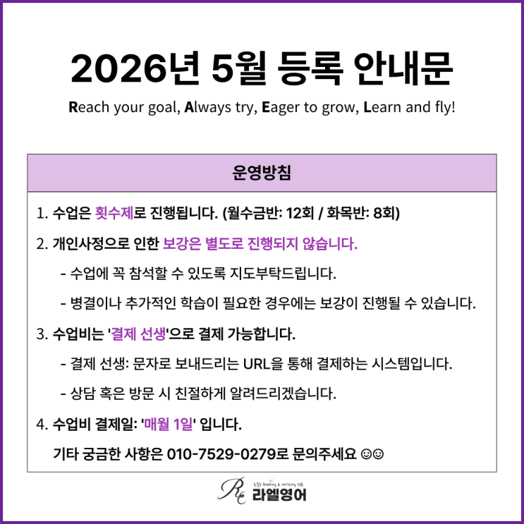 [DMC, 가재울 영어교습소] 라엘영어교습소 5월 등록 안내문