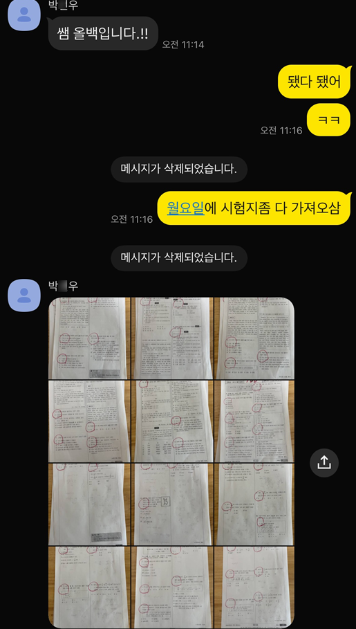 1) 2026년 1학기 중간고사가 마무리되었다. 이번 시험 준비는 정말 힘들었다. 그것은 나의 개인적인 사정 때문에 그러했다. 지금 육아와 일을 병행하고 있는데 그래서 이번 시험 준비는 유독 힘들었다. 2) 그럼에도 이번 시험에서 영광스러운 소식이 전해졌다. 가산중학교, 안천중학교에서 각각 전 과목 올백을 배출했다. 학원을 운영하는 원장으로서 너무나 큰 영광이다. 이번에 전 과목 올백을 달성한 친구들은 과목이 늘어나는 기말시험에서도 전 과목 올백을 이룰 수 있을 것이다. 이번 시험에서 너무 고생한 안천중 2학년 박0우 학생. (전과목 올백) 나이를 떠나서 사람 대 사람으로 리스펙하는 학생이다. 가산중학교 2학년 이0석 학생. (전....... <img src="https://blogthumb.pstatic.net/MjAyNjA0MzBfMTU1/MDAxNzc3NTI3MzY5MTg2.-b0PbWqAKhyUkHHvf5oUtBI9sQb8mB147BI_hQQGPgwg.2d5MYO2XftMBUAgS9gEuIrloz7A5pPE2cRNRKo5mjxUg.PNG/image.png?type=s3" />