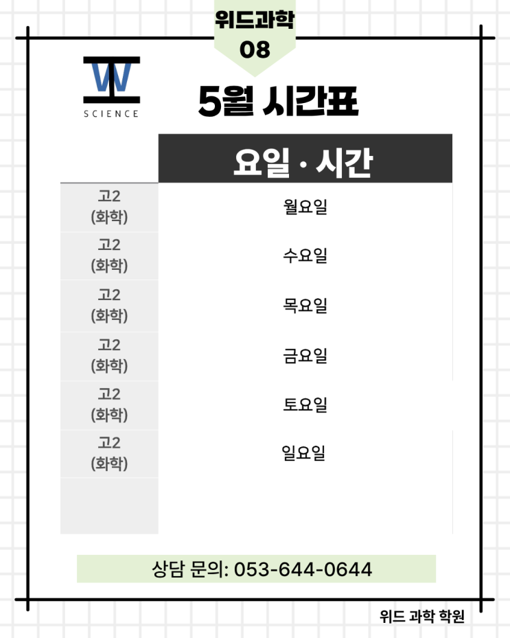 **<<5월 시간표(26년)>>**중1~고3(4/30업데이트)ㅣ달서구과학학원ㅣ상인동 과학ㅣ월성동 과학 ㅣ위드과학