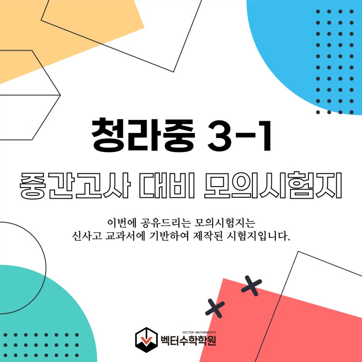 안녕하세요 벡턱수학입니다. 오늘은 청라중 3학년을 위한 모의시험지를 준비하였는데요. ✔ 왜 이 모의시험지를 만들었을까요? 중3 수학은 단순 개념 이해만으로는 점수를 올리기 어려운 시기입니다. 특히 학교 시험은 ✔ 교과서 기반 문제 ✔ 기존 기출 유형 ✔ 서술형 변형 문제 이 세 가지가 결합되어 출제되기 때문에 “어떻게 나오는지”를 정확히 경험하는 것이 중요합니다. 이번 자료는 단순한 예상문제가 아니라 청라 지역 기출문제 분석 좋은책 신사고 교과서 핵심 문제 반영 실제 시험과 유사한 구성 으로 제작했습니다. 또한, ✔ 학생들이 많이 틀리는 유형 집중 반영 ✔ 시험 직전 실력 점검 가능 하도록 설계하였는....... <img src="https://blogthumb.pstatic.net/MjAyNjA0MjFfMjgg/MDAxNzc2NzU2OTg0Nzk5.1UwiiPrAGK2BThlBYNeoLBEfLdDVGuQYwSb2YXHsa6wg.Az5ASydU4evQbd8IqFphvEyxn2v-5MDIXVE0xwWcwswg.JPEG/%BD%C3%C7%E8%C1%F6_%B9%E8%C6%F7_%C7%A5%C1%F6_%C3%BB%B6%F3%C1%DF3.jpg?type=s3" />