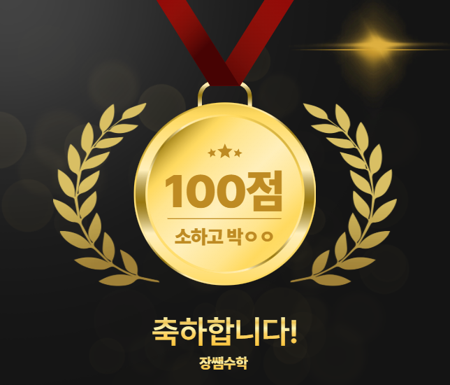 안녕하세요. 장쌤수학입니다. 이번 1학기 중간고사에서 수학 시험 100점을 받았다는 좋은 소식이 들리네요. 진심으로 축하합니다! "광명 전체 학교 난이도 상승" 이번 중간고사는 광명 여러 학교에서 학생들이 전반적으로 난이도 상승을 체감하고 있습니다. 특히 작년 고1 학생들의 첫 시험은 비교적 쉽게 출제되었었는데 이번 시험은 분위기가 달랐습니다. 문제 난이도가 올라가면서 처음 겪어보는 점수대에 당황한 학생들도 많았고, 시험 이후 아쉬움을 느낀 친구들도 적지 않을거라 생각됩니다. "최상위권은 흔들리지 않아야 한다" 이번에 좋은 성적을 거둔 학생은 처음부터 목표가 달랐습니다. 1등급을 목표로 한 것이 아....... <img src="https://blogthumb.pstatic.net/MjAyNjA0MjRfNzIg/MDAxNzc3MDI2NTMyODE1.2BQUOSE7k2QmqBMRYOEFaq6afALljh5e5jm4FUFSRQIg.2J-NWe9_GgOFGKf5RSfkCdgZ78R9N9VqzbxRCEi0ylYg.PNG/image.png?type=s3" />