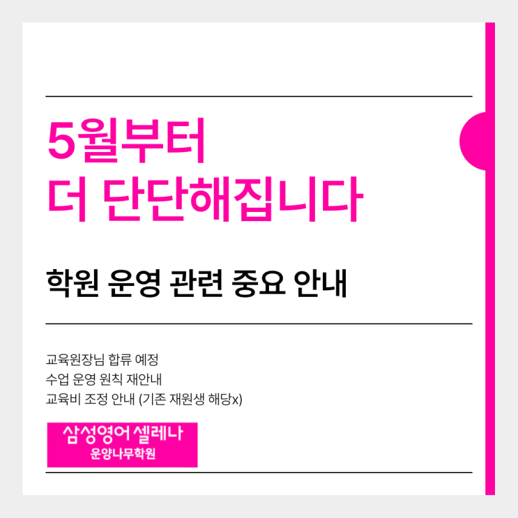 삼성영어셀레나 운양나무학원 | 5월부터 더 단단해집니다 — 학원 운영 중요 안내