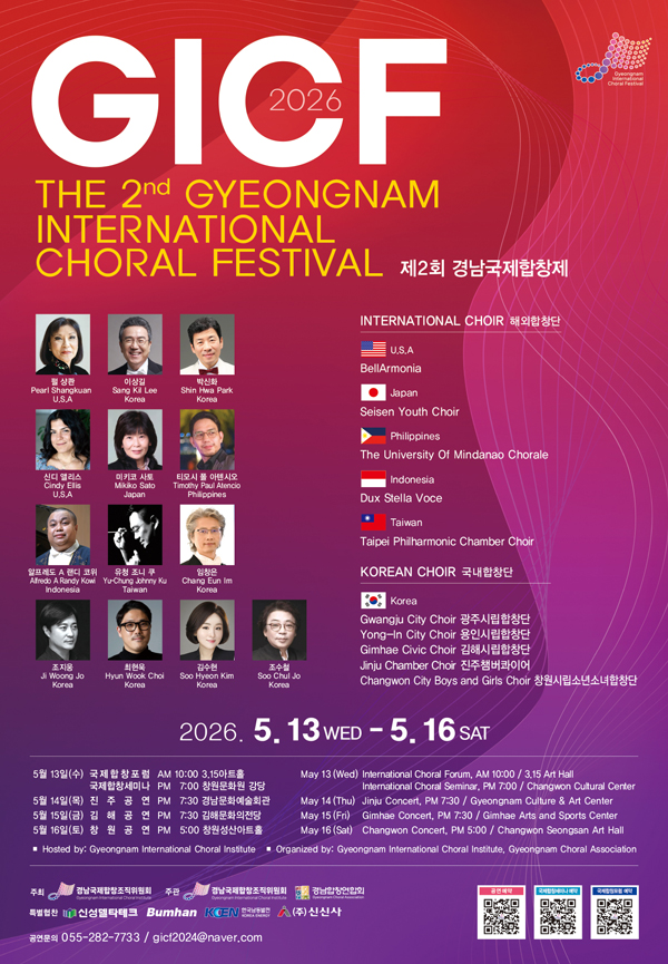 인녕하세요~ 닥터김음악학원입니다. 곧 다가오는 5월에 경남진주에서 제2회 경남국제합창제가 열리네요~ 많은 나라의 합창단이 초청되었습니다. 각 나라를 대표하는 합창단을 들을수 있는 좋은 기회인 것 같아요. 5월 14일 목요일에 경남문화예술회관 대강당에서 걍험할수 있으니 미리미리 예약해주세요. 자세한 문의는 055-282-7733 으로 연락주시기 바랍니다. -국제합창포럼- https://forms.gle/aFxoYGDZJXDSwByQ7 -국제합창세미나- https://forms.gle/adQNAYzcAsuAtz237 -공연예약- https://forms.gle/kfhcB3uwwB53sWdH9 빨리 예약하세요~~^^ 진주에서 경험하기 힘든 귀한 연주회입니다. 많은 시민들의 응원이 큰 힘이 될것 같습니다. #경남국....... <img src="https://blogthumb.pstatic.net/MjAyNjA0MTFfMTkw/MDAxNzc1ODgxNTAzMTM5.IYMhYBEJAWaP1BqEmWLgnnBrlCHVvNw75_-hRuF_ILkg.LJB7cGv3aZfs-dWPi4eO6G4VjCuu8GoaC6bOHSUFnKsg.JPEG/%B0%E6%B3%B2%C7%D5%C3%A2%C1%A6%BD%E6%B3%D7%C0%CF.jpg?type=s3" />