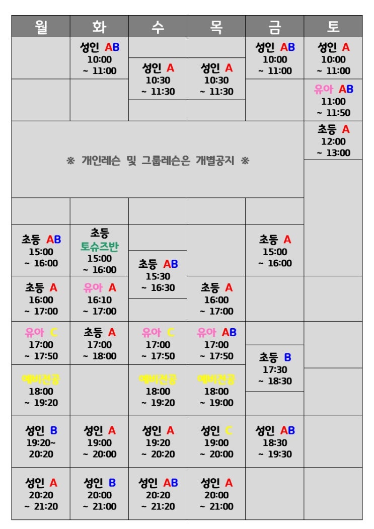 [ 대구발레/리베르발레 ]26년 5월 시간표(변경)