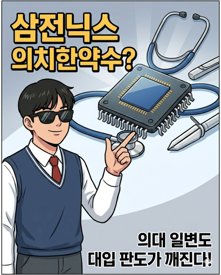 '삼전닉스 의치한약수'라는 말, 혹시 들어보셨나요? 최근 반도체 슈퍼사이클 진입과 함께 SK하이닉스의 '1인당 7억 원 성과급' 전망이 나오면서, 굳건했던 '의대 일변도'의 대입 판도에 엄청난 지각변동이 일어나고 있습니다. ️ 실제로 2026학년도 입결을 보면 반도체 계약학과의 합격선이 이미 약대를 넘어서는 등 최상위권 학생들의 이목이 쏠리고 있는데요! 삼성전자 역시 성과급 체계 개편을 논의 중이라 이 열기는 당분간 계속될 전망입니다. 하지만 전국 모집 인원이 500명 남짓인 바늘구멍 합격문! 결국 이 치열한 경쟁에서 우위를 점하는 핵심 열쇠는 **'흔들림 없는 압도적인 수학 실....... <img src="https://blogthumb.pstatic.net/MjAyNjA0MjZfMjAg/MDAxNzc3MjE0ODUzOTIw.Vq0avmXTRDl_Nvo-tz1zUKbczeSzsbgTRo4gx-tG8C8g.IbSCnPzdb-q1dciU2qHg0j41JLzcTQaDxesWFYkqmxUg.PNG/900_1777214810678.png?type=s3" />