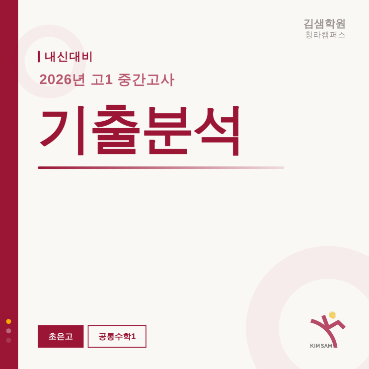 안녕하세요, 청라수학학원 김샘학원입니다. 2026년 초은고 1학년 중간고사 범위와 평가 계획이 확정되었고 김샘학원 학생들은 열심히 시험대비에 임하고 있습니다. 이번 포스팅에서는 김샘학원이 2024~2025년 기출을 분석한 내용과 2026년 시험에서 반드시 나올 유형을 다뤄보고자 합니다! 같은 시험 범위이지만 청라고와 초은고는 출제 구조가 완전히 다릅니다. 초은고는 올해 서답형이 사라지고 모두 객관식으로 출제되며, 모두 객관식으로 출제되는 만큼 전체적인 난이도가 조금은 높을 수 있습니다. 시간 분배 전략이 1등급을 가를 것으로 예상됩니다. 2026년 초은고 고1 중간고사 시험정보 기존에 있던 서답형이 출제되지 않고 객관식으로만....... <img src="https://blogthumb.pstatic.net/MjAyNjA0MjFfMTMx/MDAxNzc2NzAyNzc1Nzgz.2vz2MzB13acIp1uKwz3W6d2GuaL3s6M_HBoZXnqzBp4g.rkXGOqq_YfcnVdA_Kmq5t5H6rKoAG_BiVJTrkQX0mikg.PNG/%C3%BB%B6%F3%BC%F6%C7%D0%C7%D0%BF%F8-%C3%CA%C0%BA%B0%ED-%B0%ED1-%C1%DF%B0%A3%B0%ED%BB%E7-%B1%E2%C3%E2%BA%D0%BC%AE-%B1%E8%BB%F9%C7%D0%BF%F8.png?type=s3" />