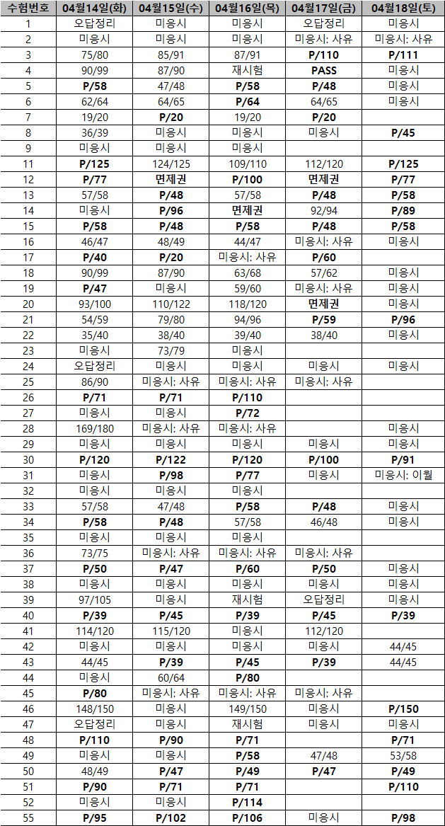 2026.04.18 단어시험 및 토요일 시험 결과표