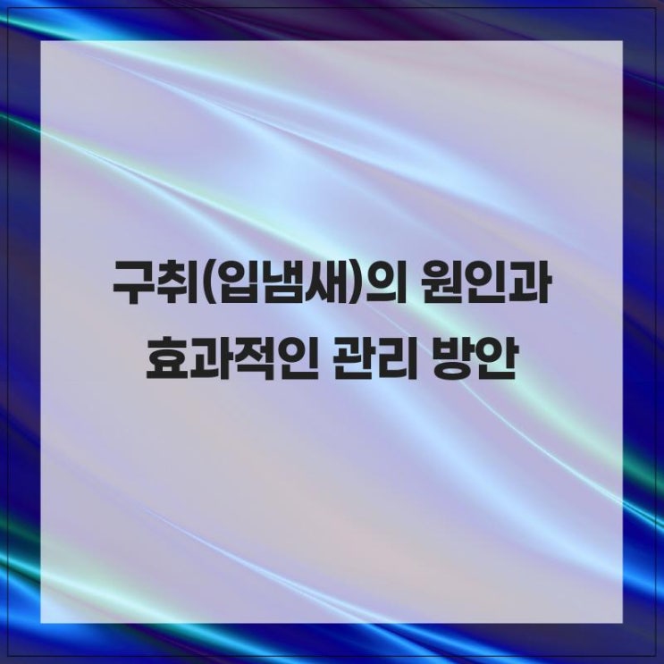 구취는 일상 생활에서 여러 사람에게 불편을 끼치는 문제 중 하나입니다. 입냄새는 다양한 원인이 있으며, 이를 이해하고 적절하게 관리하는 것이 중요합니다. 입냄새의 주요 원인 1. 구강 위생 부족: 칫솔질이 불규칙하거나 자주 하지 않을 경우 구강 내 세균이 증가하며, 이로 인해 입냄새가 발생할 수 있습니다. 특히 치아와 잇몸 사이에 음식물 찌꺼기가 남아있을 경우 더욱 심해집니다. 2. 음식 섭취: 마늘, 양파, 커피, 특정 향신료 등의 음식은 소화 과정에서 입냄새를 유발할 수 있습니다. 이러한 냄새는 식사 후 몇 시간 동안 지속될 수 있습니다. 3. 구강 건조증: 침은 입 안의 세균을 제거하고 pH 균형을 유지하는 중요한 역할을 합니....... <img src="https://blogthumb.pstatic.net/MjAyNjA0MjVfNDUg/MDAxNzc3MDQ4OTU1Mzky.RnlepCa67QIyxVZtGzQz6vWaIEbanMSRuzguFSW_mLYg.2PbHO8P-p9PjS4543kD1t8YJHlbJ4tTpIcvpw72KkvIg.JPEG/image_40.jpg?type=s3" />